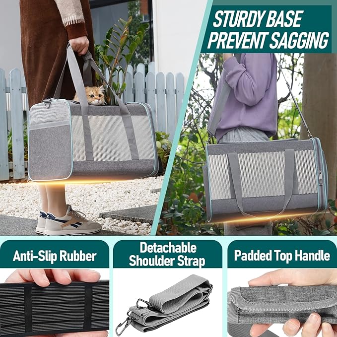 - 2 carrying ways to make transport easy and convenient. By hand with the padded top handle, or over the shoulder with the adjustable and detachable non-slip shoulder strap for custom mobility, making sure your furry friend is always within reach. Easy to secure on the car seat firmly by shoulder strap to keep pets restrained for safety while driving