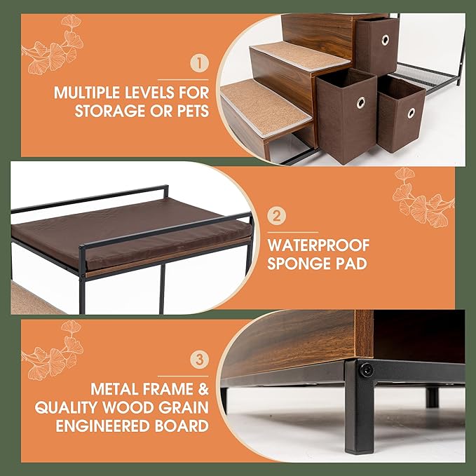 - Secure Stairs with Storage -- The stairs are equipped with non-slip carpets, which is hardwearing with superior grip, preventing slipping when climbing or descending from the perch. Perfect to play the role of pet food storage containers, 3 fabric drawers help declutter your home by storing pet supplies, which can be pulled out to be used alone anywhere else to store household stuff in your house.
