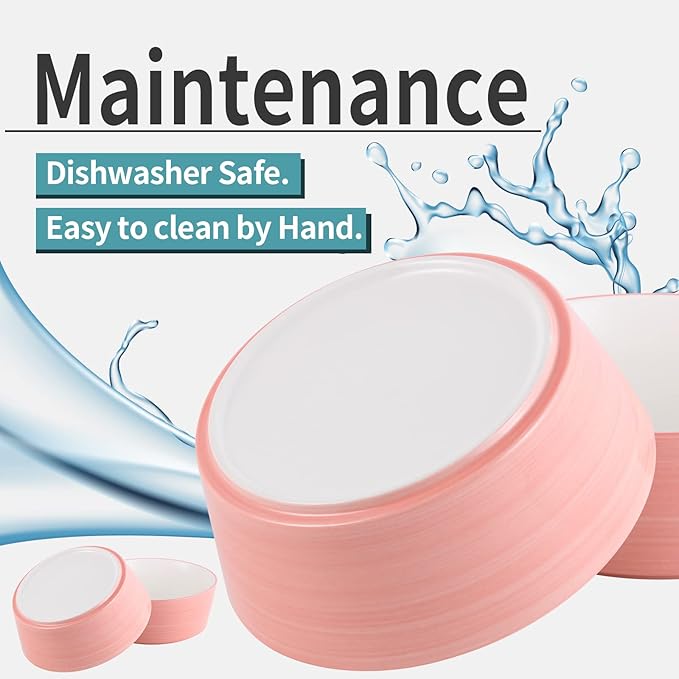 - Large Pink Dog Bowl: Ceramic Material, Keep Away from Chin Disease - The veterinarian recommends using a ceramic bowl to keep your dog away from chin disease. According to investigations, plastic bowls are easy to breed bacteria and cause black jaws. If you love your dog, our large ceramic dog food bowl will be your best choice. These large dog bowls are made from ceramic. Microwave safe, you can heat your dog's food at any time.