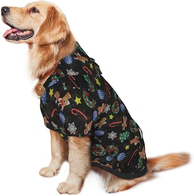 Xmas Tree Reindeer Ginger Cookie Hoodie,Christmas Cosplay Dog Clothes with Pocket and Hat Winter Clothes Sweaters XXX-Large