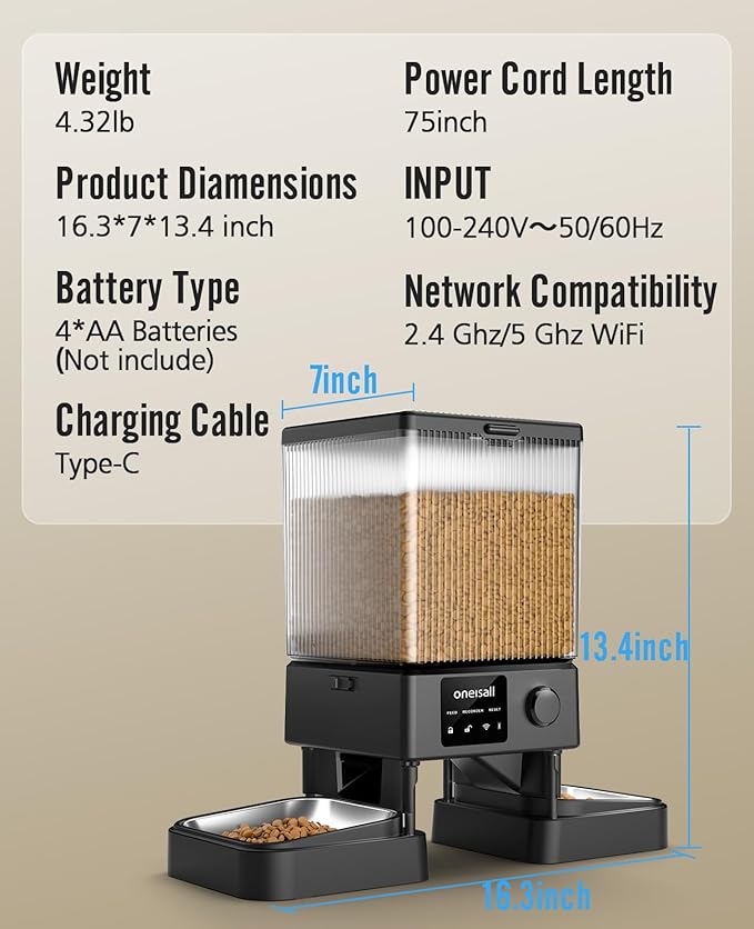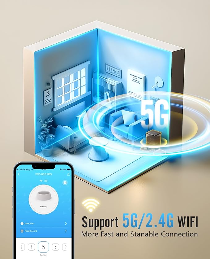 - 5G Stable Wi-Fi Connection: oneisall automatic cat food dispenser can connect to 5G/2.4G Wi-Fi. Compared to 2.4G Wi-Fi, this feeder with 5G feature would connect to network more stably. You don’t need to worry about failing to control when you are out of home