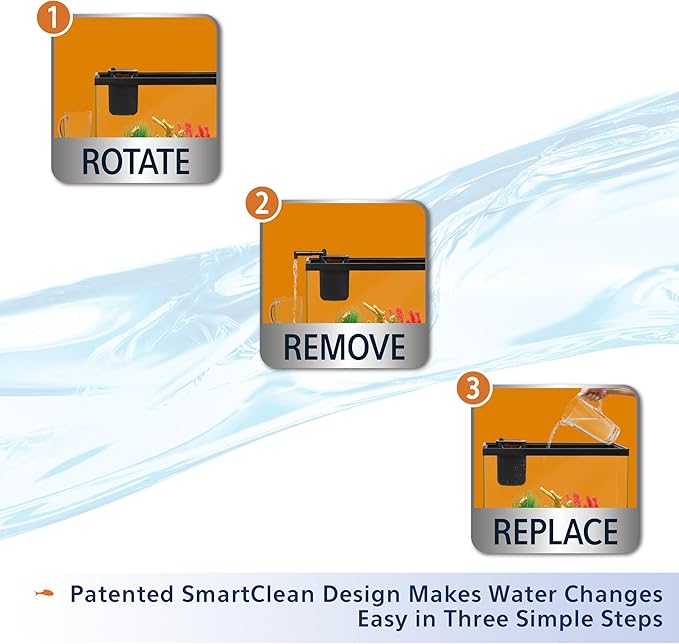 - SmartClean Technology provides quick and easy water changes to help improve water quality for a clean and clear aquarium
