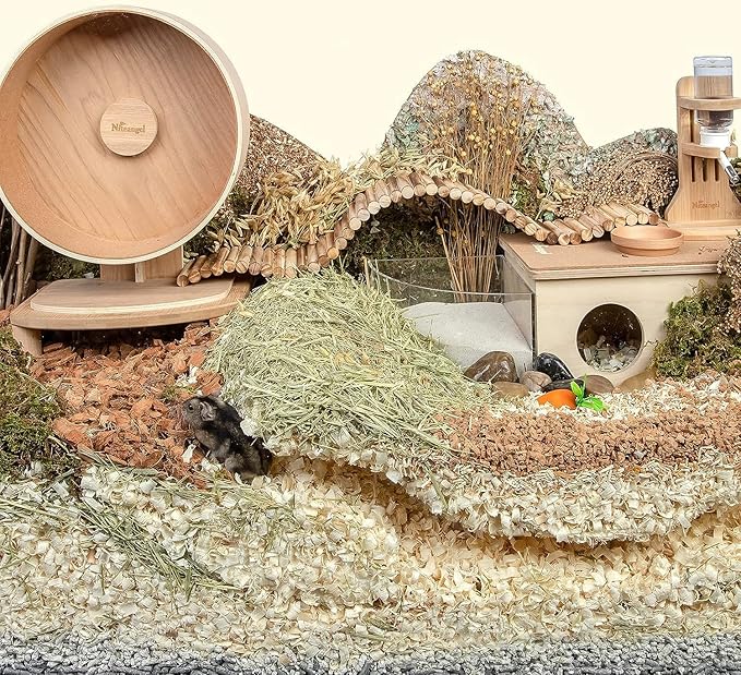 - [Perfect Gift for Many Pets] The small pet aspen bedding is suitable for Syrian, dwarf hamsters, chinchilla, rabbit, bird, gerbils, guinea pig, Mice, Lemming, Degus or other small-sized pets that love to live in a wonderful hideout without annoying smells. It is also a lovely gift for you to build your own splendid hamster palace.