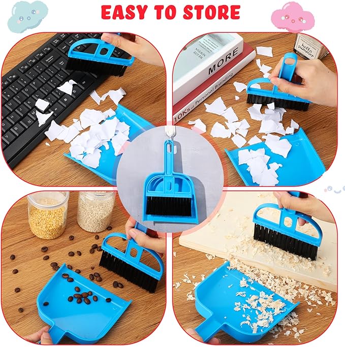 - Practical Dustpan and Brush Set: the dustpan and brush set is very convenient for cleaning the home of hamsters, guinea pigs and other small animals, also is suitable for cleaning computer keyboards, sofa corners, desks and anywhere you want to clean, can be applied repeatedly; The handle of mini dustpan and broom are designed with hook holes, which can be hung up when idle without occupying space