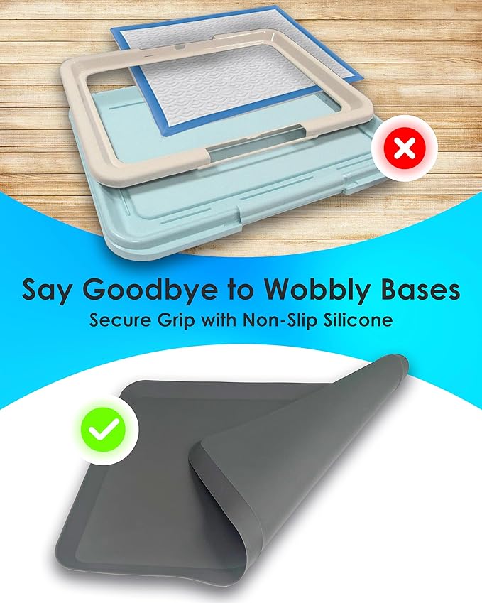 TidyFriend Puppy Pad Holder Tray Fits for 11.5” x 17” Wee Wee Pee Pads - Stable Grip, Raised Edges, Quick-Wipe Silicone Surface Dog Potty Tray Holder for Indoor Flooring Protection (Grey)