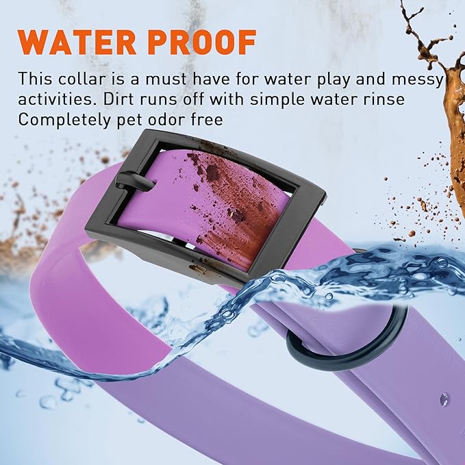 • Free Your Dog to romp in puddles and retrieve from lakes with the Dogline Biothane Waterproof Dog Collar. This water-repellent collar stays dry and odor-free, without shrinking or losing flexibility.