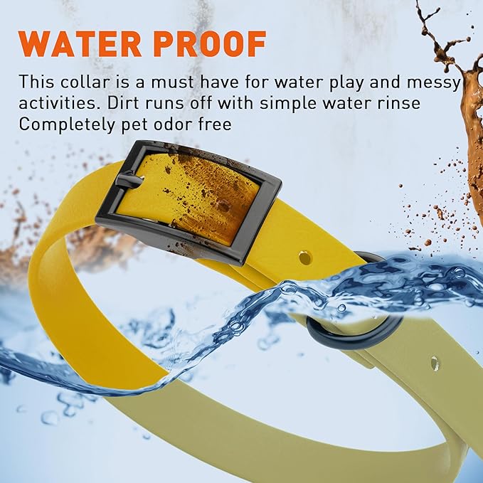 • Free Your Dog to romp in puddles and retrieve from lakes with the Dogline Biothane Waterproof Dog Collar. This water-repellent collar stays dry and odor-free, without shrinking or losing flexibility.