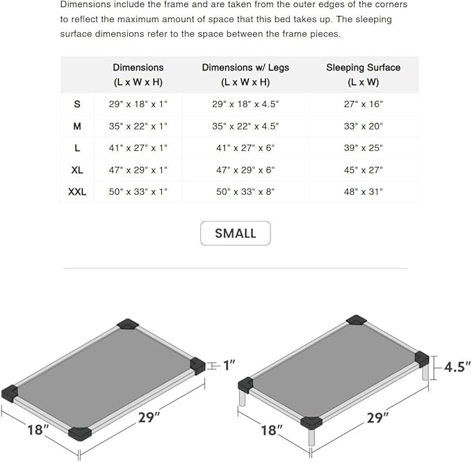 - Elevated and Padded for Extra Comfort: The bed's padded sling is filled to a 1.5” thickness with recycled polyester fiberfill for extra softness and insulation. When elevated with the included legs, it conforms to your dog’s body to eliminate pressure points and provide orthopedic-style support.