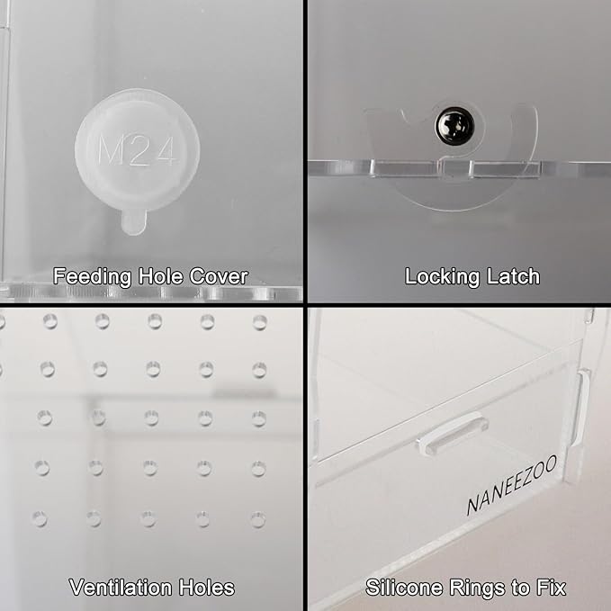 - Included Components : Locking latch, feeding hole, acrylic enclosure