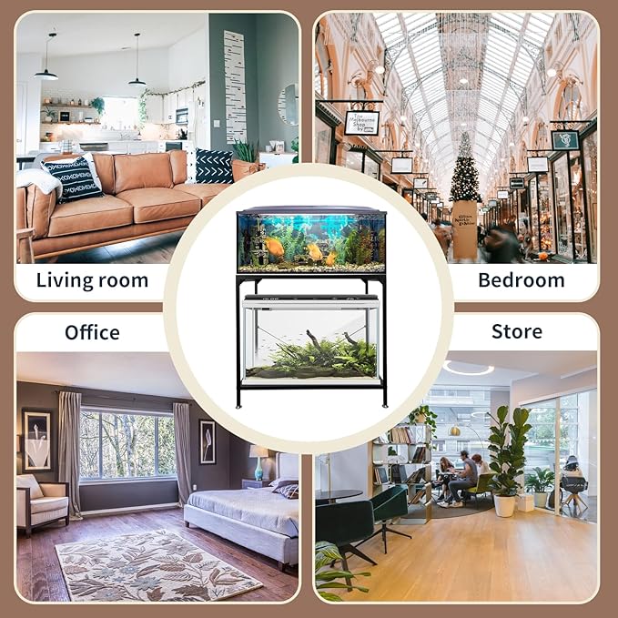 - Stylish and Functional: The sleek, black powder-coated finish not only adds a touch of elegance to your aquarium setup but also provides extra protection against rust and corrosion, ensuring that your fish tank stand remains in excellent condition for years to come.