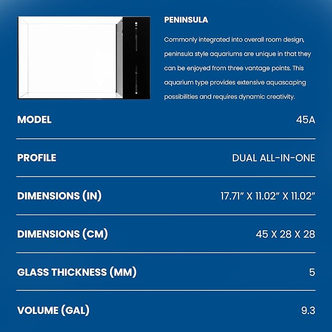 - [Customization at Your Fingertips] Tailor your complete rimless tank to set up your small to big fish tank requirements. Available in 7–21 gallon capacities, this is the ideal canvas for your aquatic imagination.