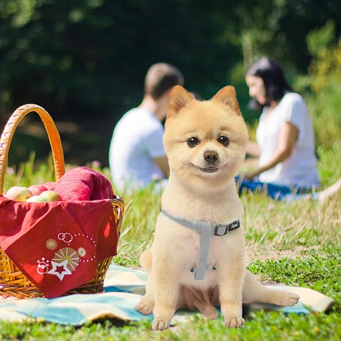 PUPTECK No Pull Dog Harness Soft Adjustable Basic Nylon Step in Puppy Vest Outdoor Walking with ID Tag, Grey, XS