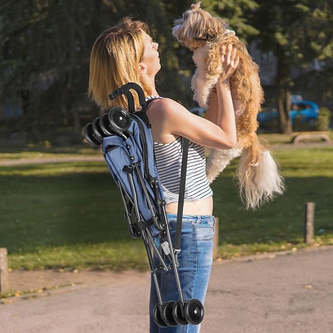 Wedyvko Travel Portable Dog Stroller, Pet Stroller for Small Puppy Dogs & Cats, Up to 33 lbs, Navy Blue