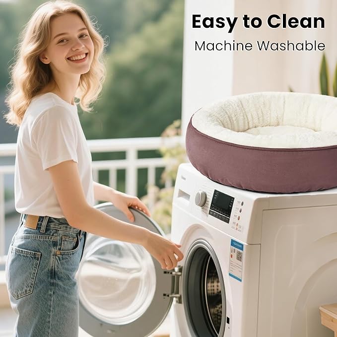 - Donut Cuddler Shape: The round dog bed allows pets to curl up while the raised rim creates a sense of security and provides head and neck support. Premium ultra-soft filling offers joint and muscle pain relief.The 20 inch round pet bed is perfect for cats, small dogs and other pets up to 15 lbs.