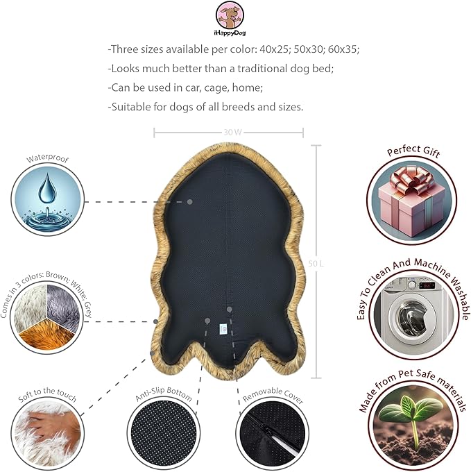 - GET THE RIGHT FIT: Whether you have a small pup or a large dog, our rug memory fur dog bed has you covered. It’s available in 3 sizes (Medium: 40” L x 25” W, Large/Extra Large: 50” L x 30” W, Giant: 60” L x 35” W) to ensure your pet gets the perfect fit