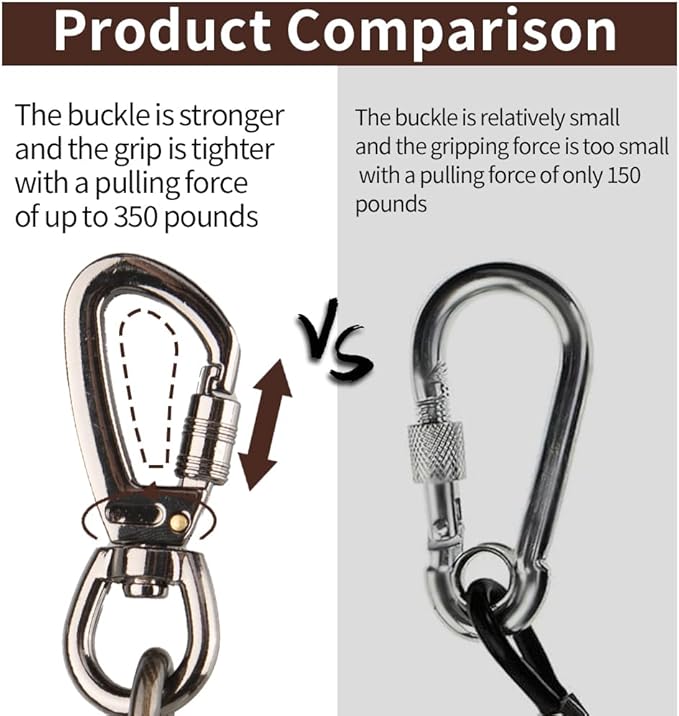 - Upgrade Heavy Duty Buckle & 360° Tangle Free-dog cable use heavy duty locking carabiner, stronger and more durable, with a 360° smooth rotation axis, your dog can run freely without getting tangled.
