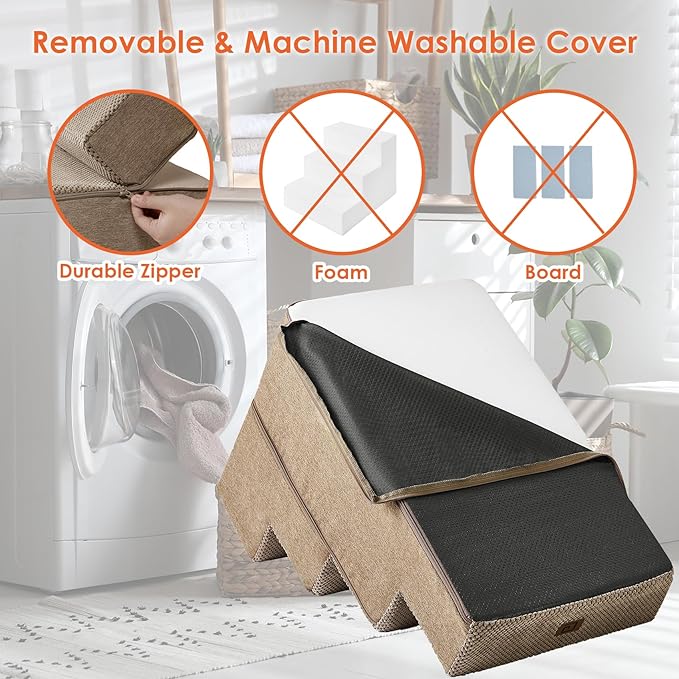 - EASY TO CLEAN - The dog step features a removable and washable cover, which can be cleaned by hand or in the washing machine. This saves you time and makes cleaning incredibly convenient.