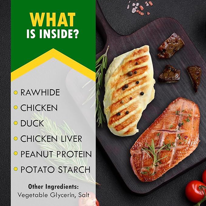 - ✅RAWHIDES STICK WRAPPED WITH REAL CHICKEN MEAT : You need to let your dog enjoy high quality natural and healthy food.It is right to choose our product. Dog chewies perfect for training this hides bones will last a long time and can promote dogs' teeth healthy. Have less plaque and tartar. Keeps dogs' jaws strong and breath fresher.