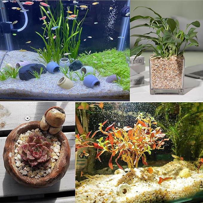 - 【Wide Usage】Our coarse silica sand rocks pebbles are widely used in freshwater and saltwater aquariums, ponds, aquariums, gardens, potted plants, vases, ashtrays, crafts and hobbies.