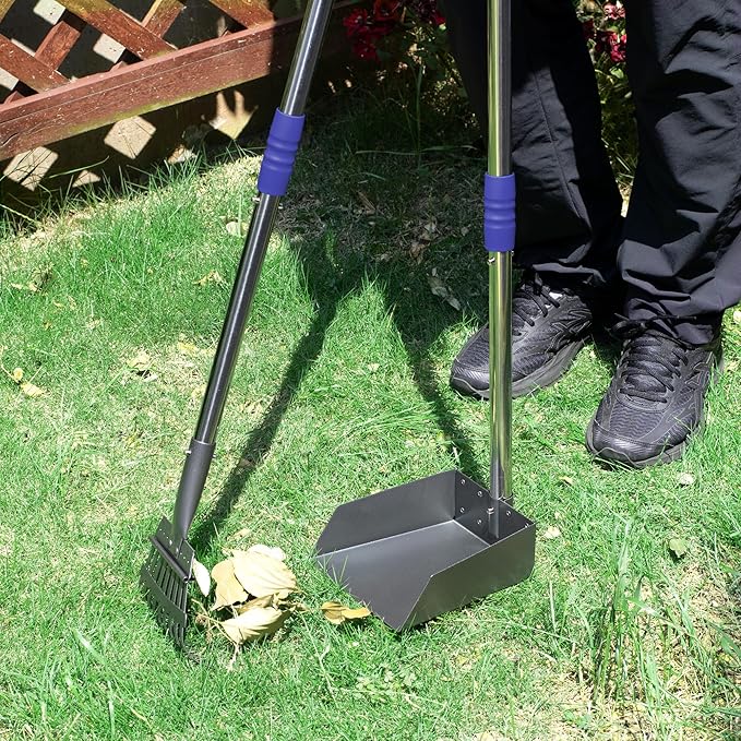Heeyoo Dog Pooper Scooper, Dog Poop Tray and Rake Set, Pet Waste Removal Scoop with Long Adjustable Sectional Stainless Handles