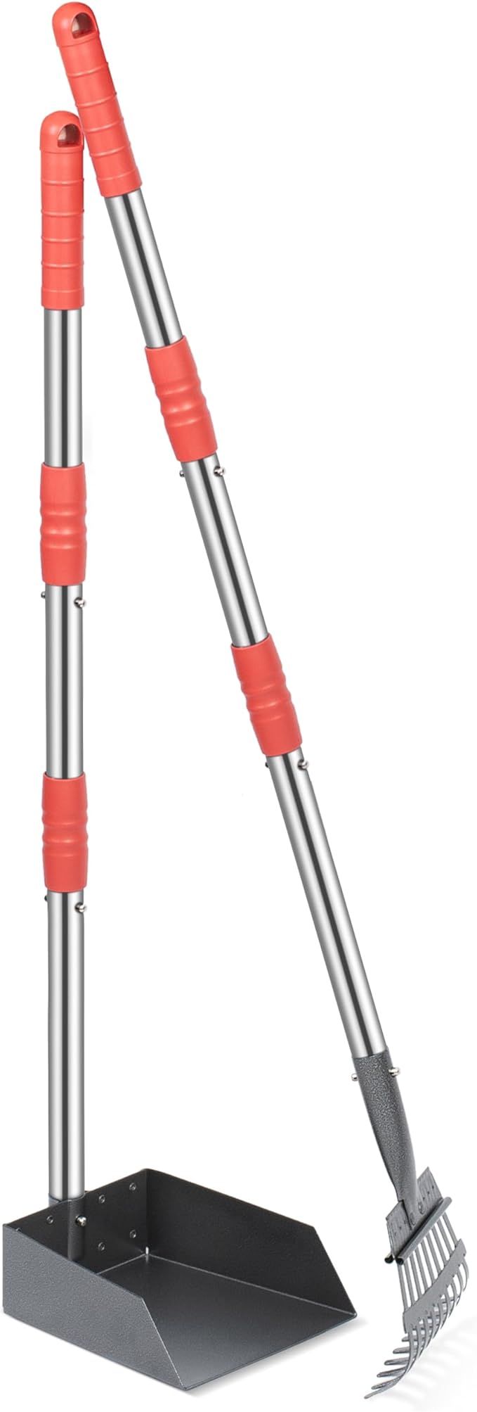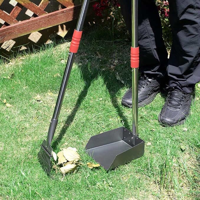 • Pooper Scooper Equipment in Pack: 1 tray and 1 rake kit meet almost all the needs of using. The size is over 37 inches, you need not bend over when clean pet poop.
