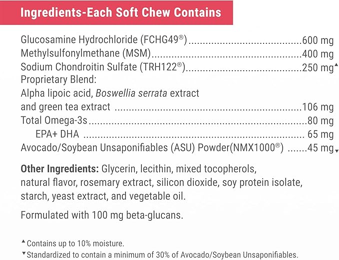- Joint Health Support for Senior Dogs: Dasuquin, the #1 veterinarian recommended joint health supplement brand◆, contains avocado/soybean unsaponifiables (ASU), glucosamine hydrochloride, and sodium chondroitin sulfate that work better together to support joint health in dogs