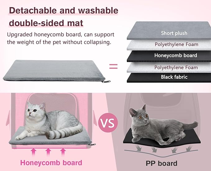 - 【 GREAT VENTILATION & COMFORT 】: Comes with 4-side breathable mesh windows, giving plenty of air for pets. Makes it easy for you to observe the movement of your pets while they are enjoying the scenery outside. The pet backpack carrier offers multiple ways to let your pet in and out with ease. To enhance comfort, the pet cushion is placed inside the bag's bottom and has a removable, washable cover. This ensures your furry friend has a spot to rest while on the go.