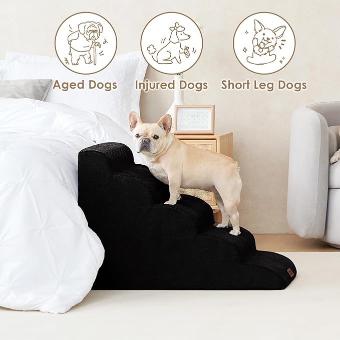 EHEYCIGA Curved Dog Stairs Ramp for High Beds 22.6" H, 5-Step Dog Steps for Small Dogs and Cats, Pet Stairs for High Bed Climbing, Non-Slip Balanced Pet Step Indoor, Black
