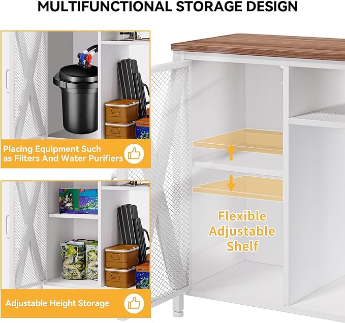 - Sturdy & reliable construction: Made of thickened table legs, our fish tank table supports up to 350 lbs. The included anti-tip devices help avoid tip-over accidents. The moisture material ensures durability