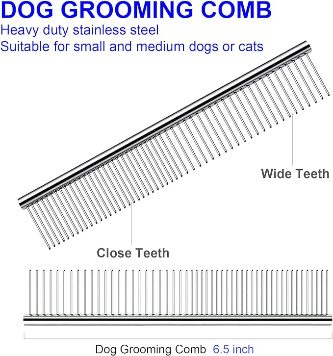 - Practical dog scissors kit: Dog grooming scissors kit includes 6.5-inch thinning shears, 6.5-inch curved scissors, grooming comb, cleaning cloth, and black case. So it can trim any part of your pet such as body, face, nose, ear, tail, paw etc