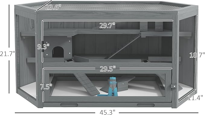- CAGE FOR HAMSTERS INFORMATION: Overall Dimensions: 45.25" L x 23.5" W x 21.75" H. Assembly Required.