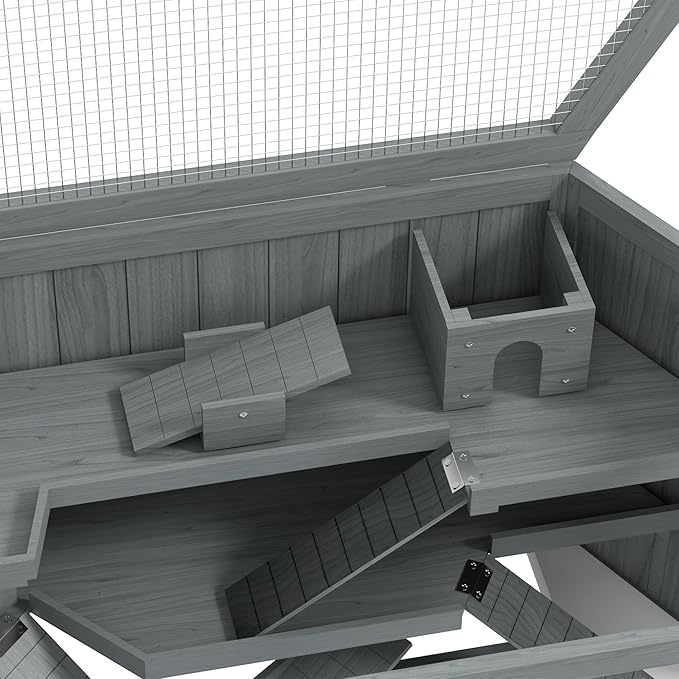 PawHut Wooden Large Hamster Cage, Rat Habitat, 3 Tier Small Animal Exercise Play House with Tray, Water Bottle, Activity Center, Gray