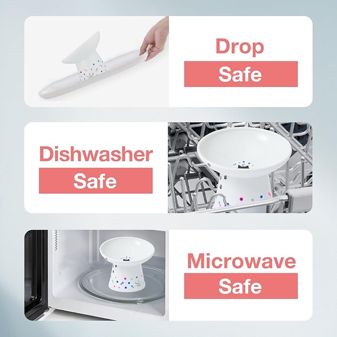 - Necoichi’s largest bowl yet! Bowl measures 6.1 x 5.7 inches in diameter, 1.8 inches deep and 5.3 inches tall, which when combined with the tilted lip, resolves any issues that certain breeds may have encountered with previous bowl types. The tilted lip makes it even easier for flat-faced cats and messy eaters to dine with less difficulty and stress.