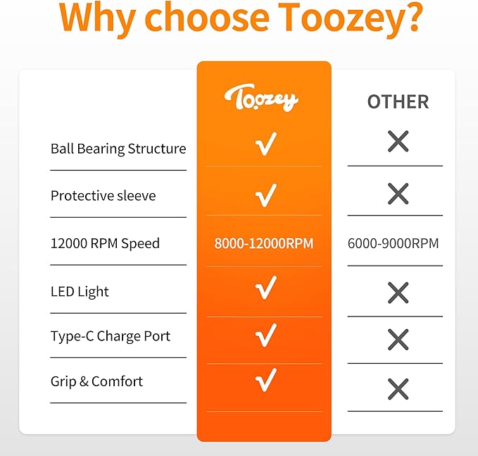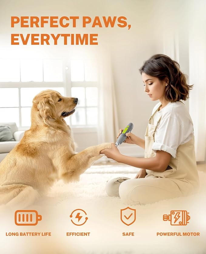 - Precision LED Light Feature: The Toozey Dog Nail Grinder is enhanced with LED lighting, illuminating the grooming area for secure nail trimming, and includes an LED indicator for battery status, making it essential for pet owners.