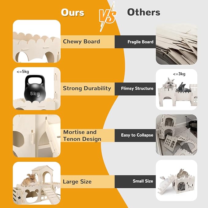 - 【Widely Used】This is not only rabbit castle, it is also bunny hideout and bunny hay holder. Suitable for all kinds of small pets, like rabbits, little cats, hamsters,syrian hamsters, guinea pigs, chinchillas, ferrets, hedgehog, gerbils and etc. It is a perfect gift for those who like small animals.It can helps to exhaust the rabbits' physical strength and reduces the boredom of the small pets in cage.