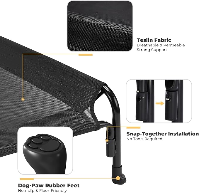 - Stay Hygienic and Cool Ever: Teslin breathable mesh helps keep your dog cool, especially during the hot summer months. The elevated dog cot design allows air circulation and prevents the accumulation of moisture, providing a dry sleeping environment.