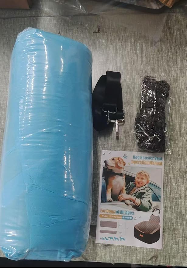 - All-in-One Travel Package: Package includes 1 booster seat, 2 different height booster cushions, 1 car dog safety belt, 1 fabric bone toy. No need to buy extra accessories to use with it. Both sides of the seat have large storage pockets for leashes, snacks, cups, and other puppy-friendly items to keep your car tidy