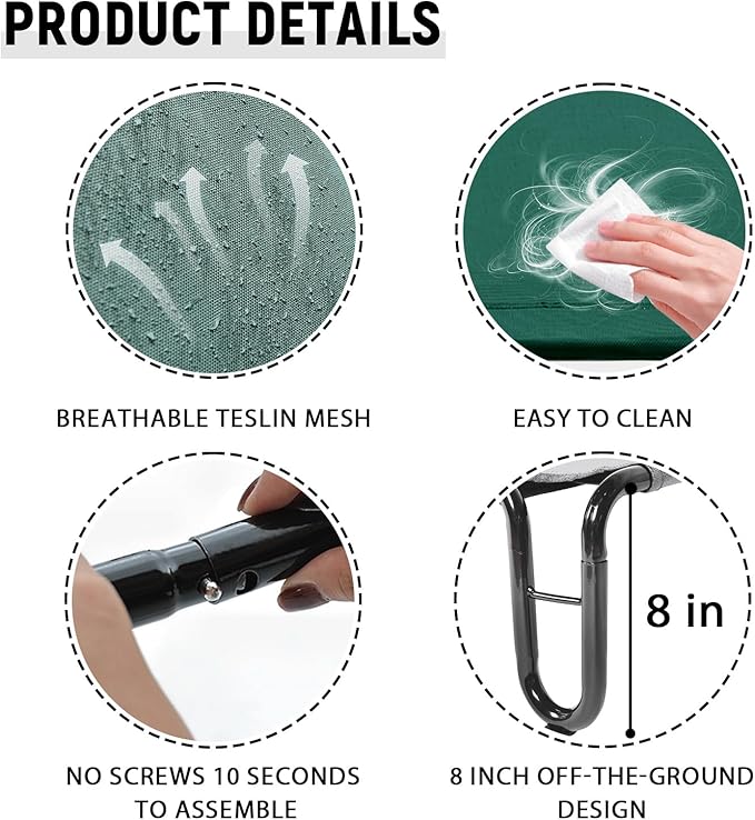 pettycare Elevated Outdoor Dog Bed - Dog Cots beds for Medium Dogs, Waterproof Raised Dog Bed Easy to Assemble, Cooling Elevated Dog Bed with Teslin Mesh, Durable, Non Slip, Up to 40 lbs,Green