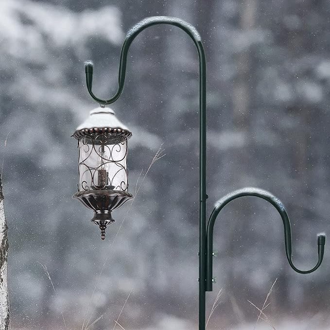 - 【5 PRONGED DESIGN】The base of the shepherd hooks outdoor is constructed with two double-forked based prongs and an extra long one. The 5 base prongs provide better stability to the shepherd hooks,much better than 2 or 3 prongs,It will be more stable.so you can easily install it into the ground to elevate the look of your garden and outdoor space.