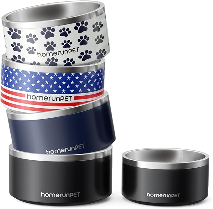 Dog Bowl, HomeRunPet Dog Food Water Bowl with Non-Slip Rubber Base, Metal Insulated Stainless Steel Dog Bowls, Double Wall Dog Bowl for Small Medium Large Dogs, Durable, Dishwasher Safe, 32oz