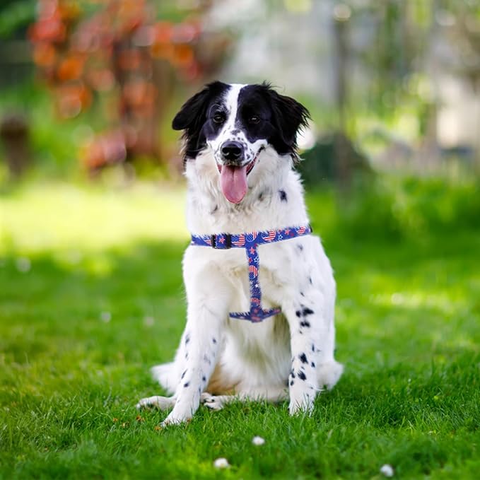 PUPTECK No Pull Dog Harness Soft Adjustable Basic Nylon Step in Puppy Vest Outdoor Walking with ID Tag, American Flag, S