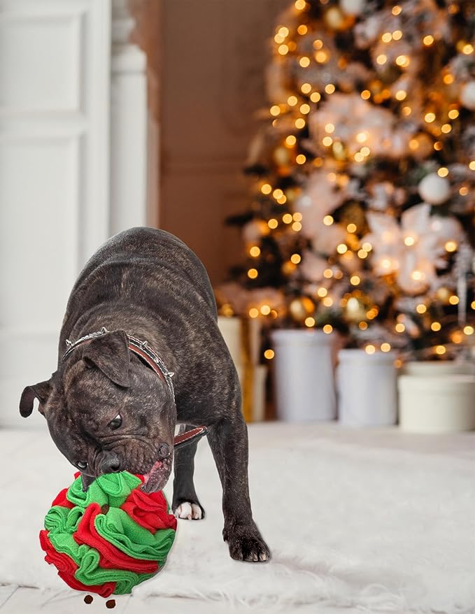 Puppy and Medium Breed Snuffle Interactive Foraging Dog Puzzle Ball Toy Christmas Green and Red Large