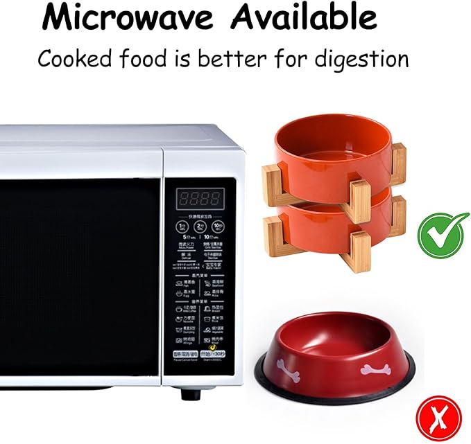 - DISHWASHER MICROWAVE SAFE - Ceramic pet bowls is made of Porcelain Ceramic with wood frame to keep from sliding on the floor. Ceramic cat dog bowls are free of lead and cadmium. High temperature ceramic, non-toxic harmless, no smell, durable. Clean sanitation, be helpful for pet health. and the cat dog food water bowls conveniently dishwasher safe so it can be easily cleaned. No Fuss.