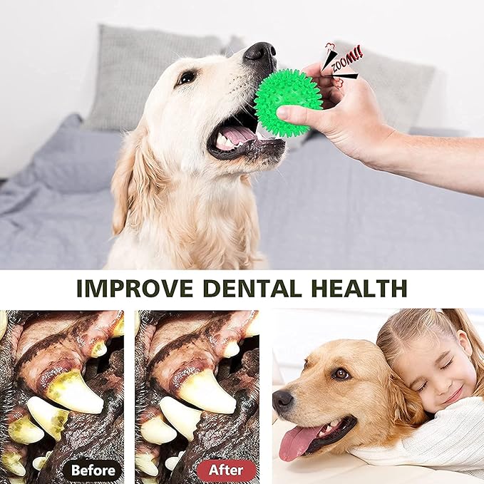 - IMPROVES DENTAL HEALTH — Unique shape with spikes help prevent plaque and tartar buildup as dogs chew. Meanwhile,it tends to satisfy a dog's natural instinct to chew to massage gums and improve dental health while dogs play.