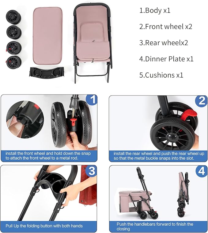 - Easy to Fold for Storage:The pet stroller can be folded by pulling the loop buckles on both sides. Easy to carry and store. The storage compartment can also carry pet drinking water and food.