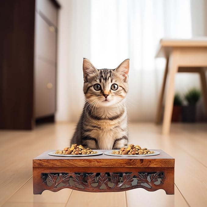 - π Perfect for Small and Medium-sized Pets: Upgrade your pet's feeding experience with the Scroll Handcarved Pet Feeding Station by IRONGATE - Sleek, Eclectic, adventurous, and ready for food. This dog food stand allows your pet to eat in a healthy position to reduce stress on the neck and spine. This promotes better digestion and thus better health. Keeps your pet happy and comfortable.