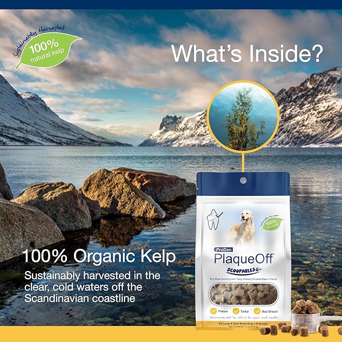 - Natural Ingredients - Made with sustainably harvested kelp from the clear waters off the Scandinavian coastline, offering a natural solution for your dog's dental care.