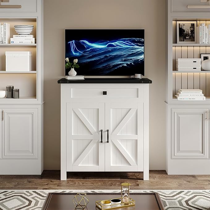 Suadism 20 Gallon Aquarium Stand With Charging Station, Farmhouse Fish Tank Stand, Reptile and Terrarium Stand with Drawer and Cabinet Storage, Sturdy Heavy Duty 27.6"15.7" - White