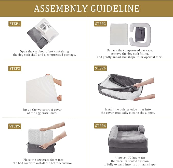 - Suitable Size: Suitable for All Breeds: 48"W x 35"L x 8"D; Sleeping surface: 39.5"W x 31"L (Up to 120lbs); When selecting the product size, please pay attention to the sleeping area. Please wait for 48 hours for full expansion to ensure optimal height and comfort before using.