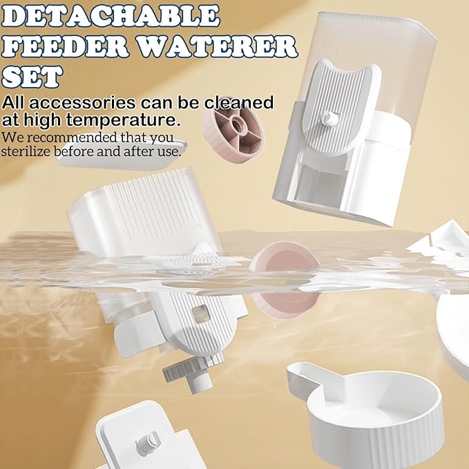 - Auto-Replenishment Design: This automatic bunny feeder set uses a natural gravity supply system to continuously provide fresh water and plenty of food, effectively reducing the frequency of food and water refills